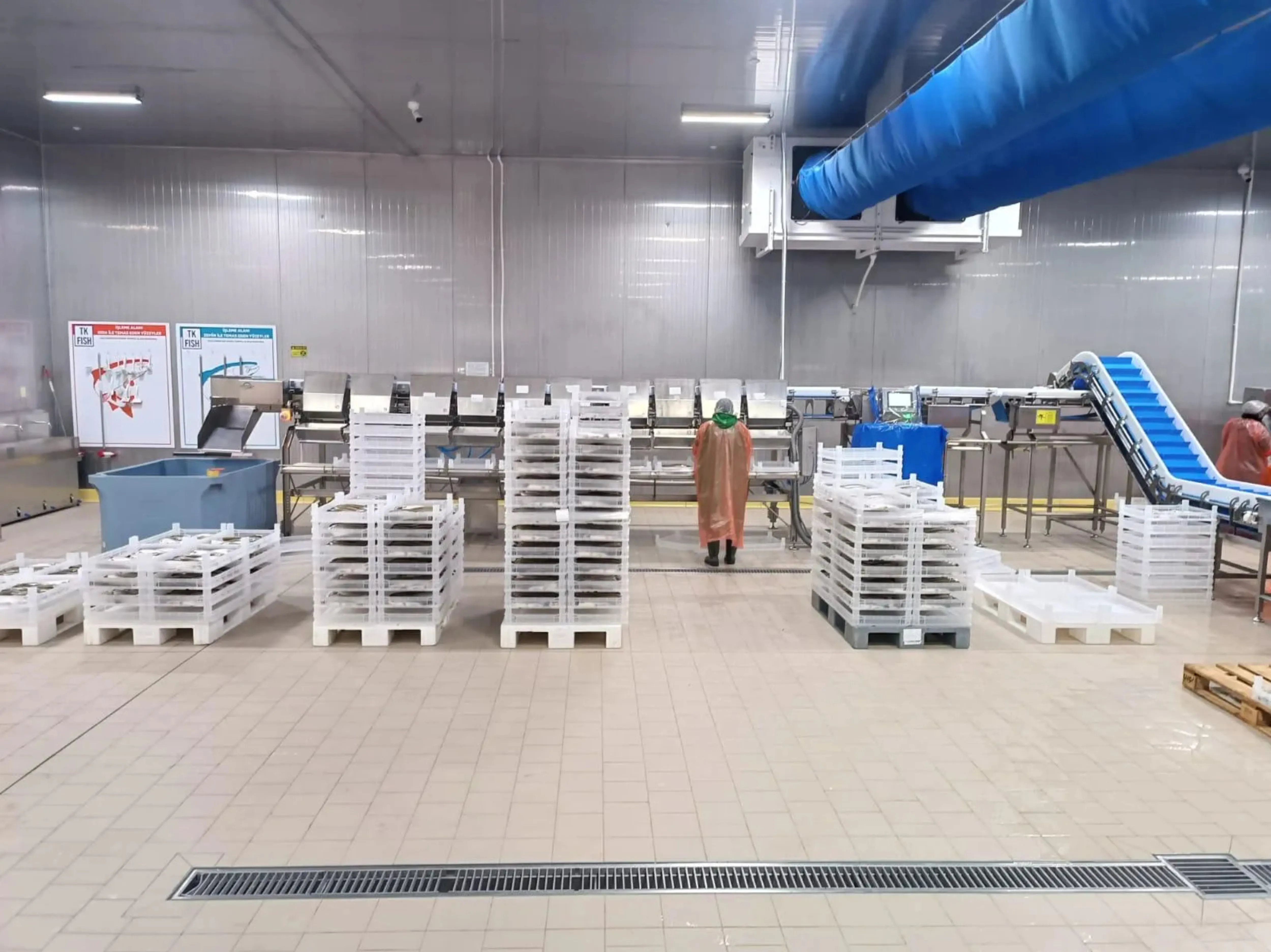 TK Fish, su ürünleri alanında sürdürülebilir üretim, yüksek hijyen standartları ve güçlü lojistik kabiliyetiyle faaliyet gösteren köklü bir kuruluştur. Kurulduğu günden bu yana çevreye duyarlı, izlenebilir ve güvenilir üretim sistemleri geliştirmeyi hedefleyen şirketimiz, bugün hem iç pazarda hem de uluslararası ölçekte önemli bir tedarikçi konumuna gelmiştir. Üretim süreçlerimiz, 34.000 m² arazi üzerinde konumlandırılmış ve 10.000 m² kapalı alana sahip entegre tesislerimizde yürütülmektedir. Modern hatlarımızla yılda 80.000 tona varan üretim kapasitesine ulaşırken, günlük 120 ila 150 ton aralığında kesim yapılabilmektedir. Büyütme aşamasında mevsimsel koşullar gözetilerek üretim yerleri optimize edilmekte; örneğin kış döneminde somonlar Keban Barajı’na taşınarak gelişim süreci tamamlanmaktadır. Hasat edilen balıklar buzlu su sistemiyle toplanır, ardından tartım ve gramajlama işlemleri yapılarak işleme sürecine alınır. Temizleme, soğuk depolama ve glaze-paketleme aşamaları hijyenik koşullarda gerçekleştirilir ve ürünler -18°C’de, 2.500 ton kapasiteli soğuk hava depolarında muhafaza edilir. Tüm süreç boyunca izlenebilirlik sağlanır ve gıda güvenliği ön planda tutulur. Bugün TK Fish, 300 işleme personeli, 100 lojistik çalışanı ve 60 kişilik kuluçka ekibiyle faaliyet göstermektedir. Türkiye genelinde 80’den fazla ile canlı balık nakli yapılmakta; ABD, Japonya, Çin, Rusya, Avrupa ülkeleri, Güney Afrika ve İskandinav bölgesi gibi pek çok pazara düzenli ihracat gerçekleştirilmektedir. Her geçen yıl teknolojisini ve üretim altyapısını geliştiren TK Fish, sürdürülebilirlik ilkesiyle hareket eden global bir marka olma yolculuğunu istikrarlı şekilde sürdürmektedir.